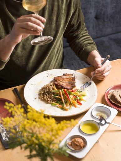 Sobald es abends wird im Kleinwalsertal riecht man im ganzen Oswalda Hus den leckeren Duft von frisch gekochtem Essen. Joachim zaubert keine Gerichte, er kocht sie. Mit den besten Zutaten, die er bekommen kann. Fleisch aus artgerechter Tierhaltung, Obst und Gemüse von heimischen Erzeugern und das alles in Bio. Logisch. Besonders loben unsere Gäste Joachim's vegetarischen und veganen Kreationen... die sollen äußerst einfallsreich aber vor allem auch sehr lecker sein. Probiert doch am besten selbst...