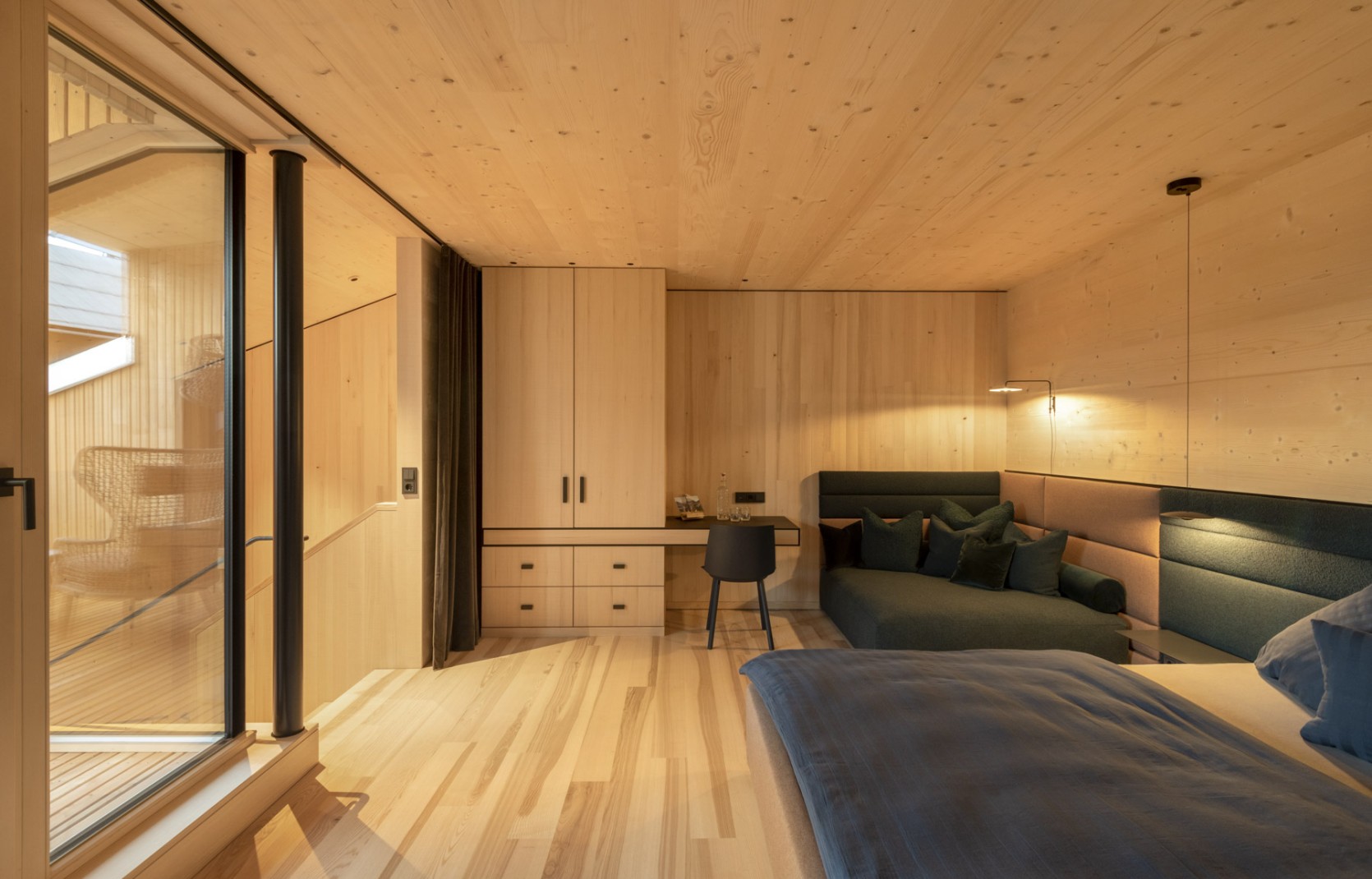 Experience extraordinary moments in our Romantic Suite. The panoramic bathtub, the luxury bathroom that meets the highest design standards. Naturally in our solid wood concept. Your very own private roof terrace with cosy lounge furniture. A place of precious tranquillity and a fantastic mountain backdrop.