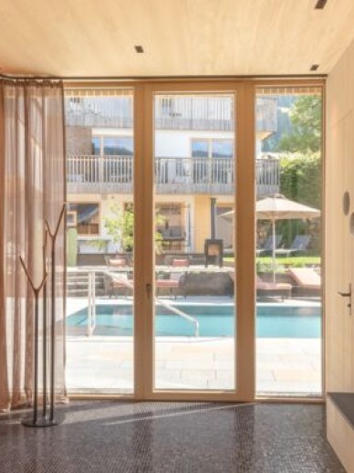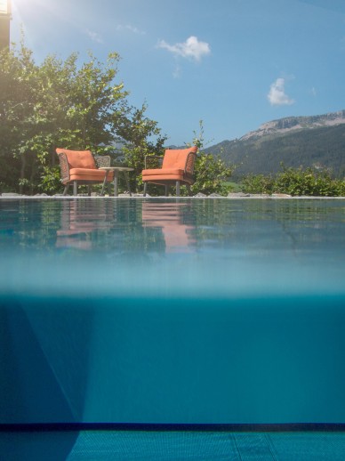 Cool water in summer and cosily heated to 32°C on colder days - our new panorama pool. At any time of year with a unique view of our mountain world. In the centre is our local mountain "Hoher Ifen" with its mighty plateau. Perhaps you could even call it infinity. It feels very close. You will feel it.
